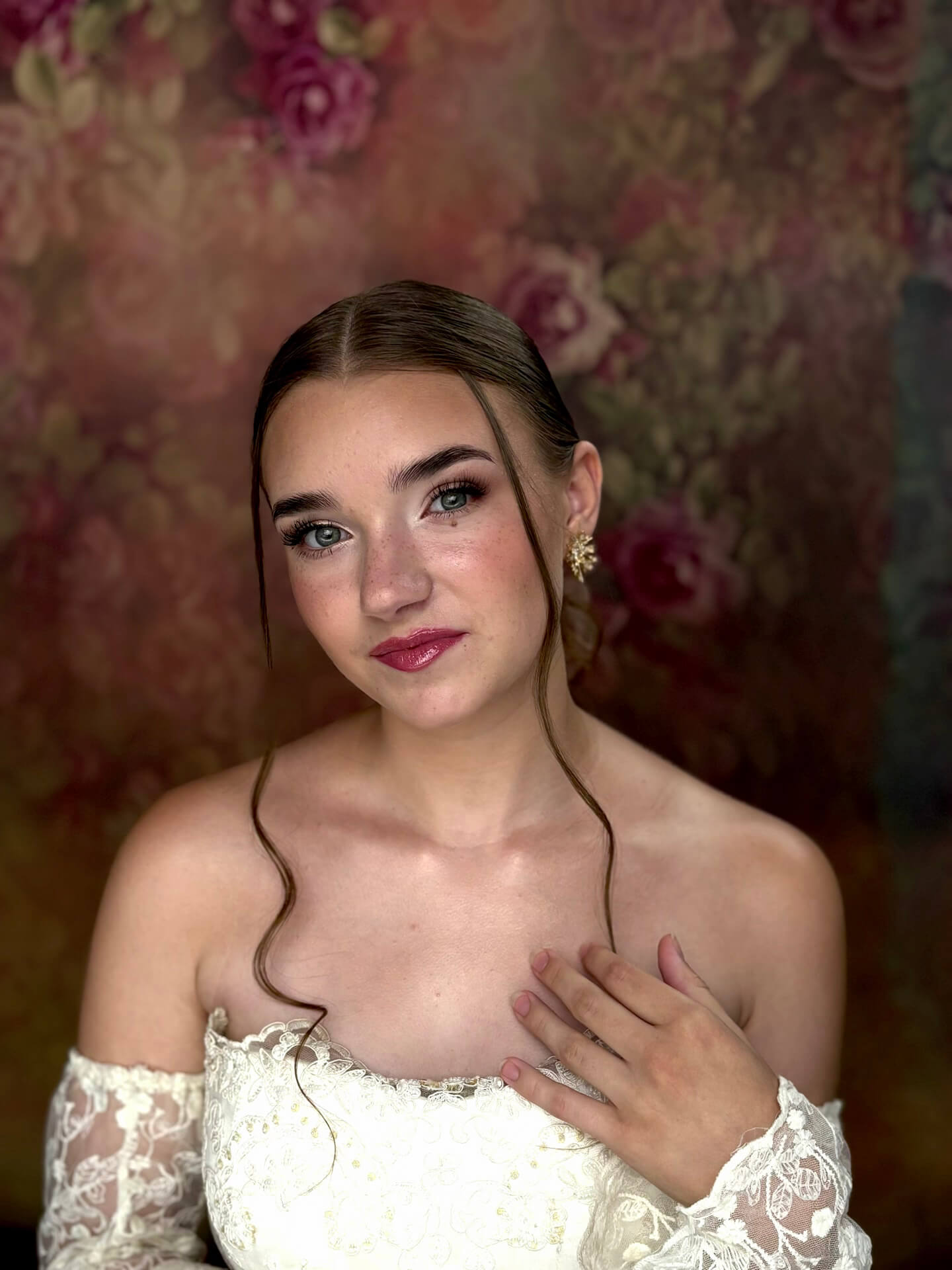 Esküvői smink Baján – menyasszonyoknak és vendégeknek. Extra tartós, profi smink, hogy a nagy napodon végig magabiztos, ragyogó és tökéletesen elkészített lehess. Személyre szabott stílus, prémium termékekkel, hogy minden fotón és pillanatban a legjobb formádat hozd.